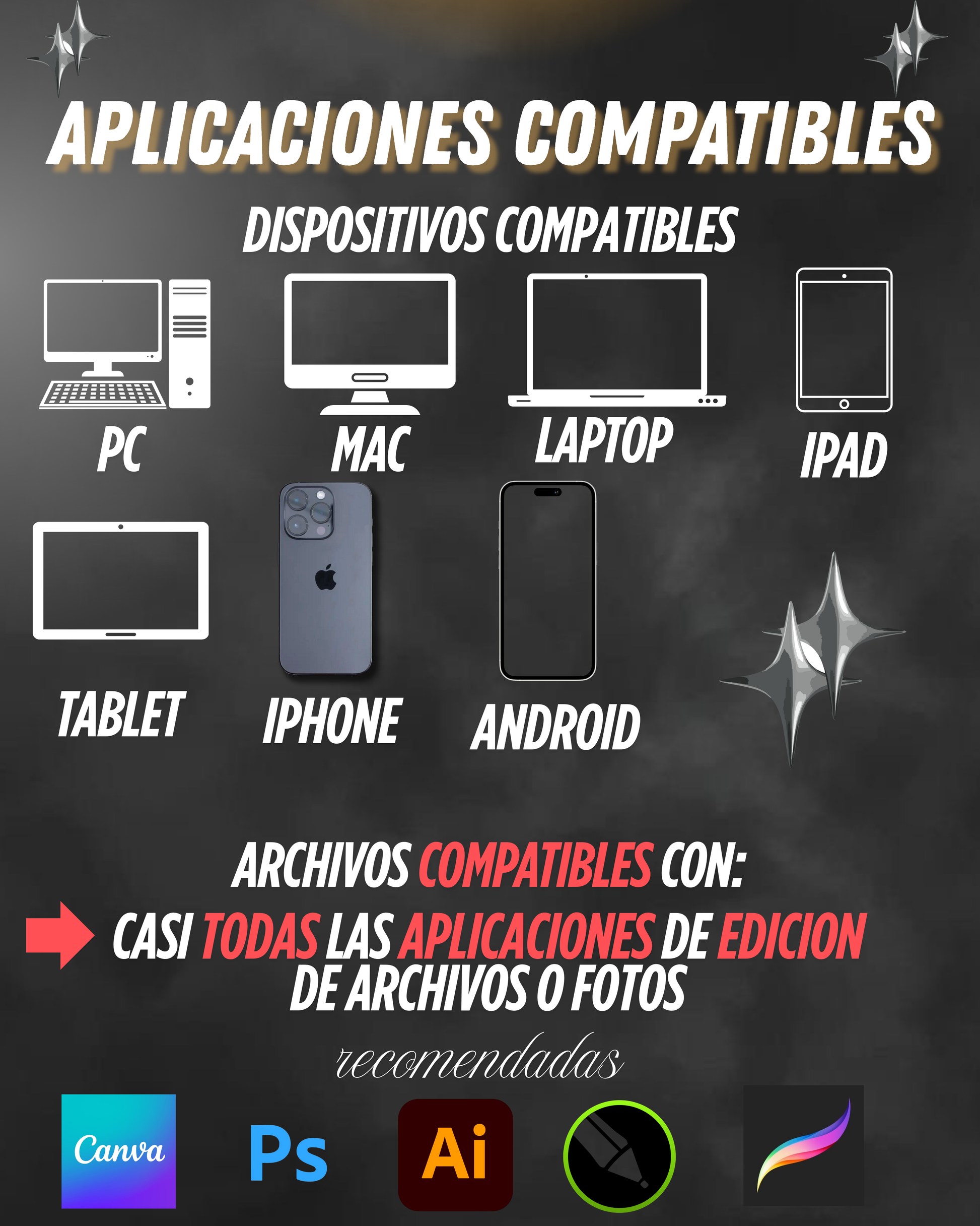 • Formato editable en Canva, CorelDRAW, Photoshop (PSD) y Procreate.